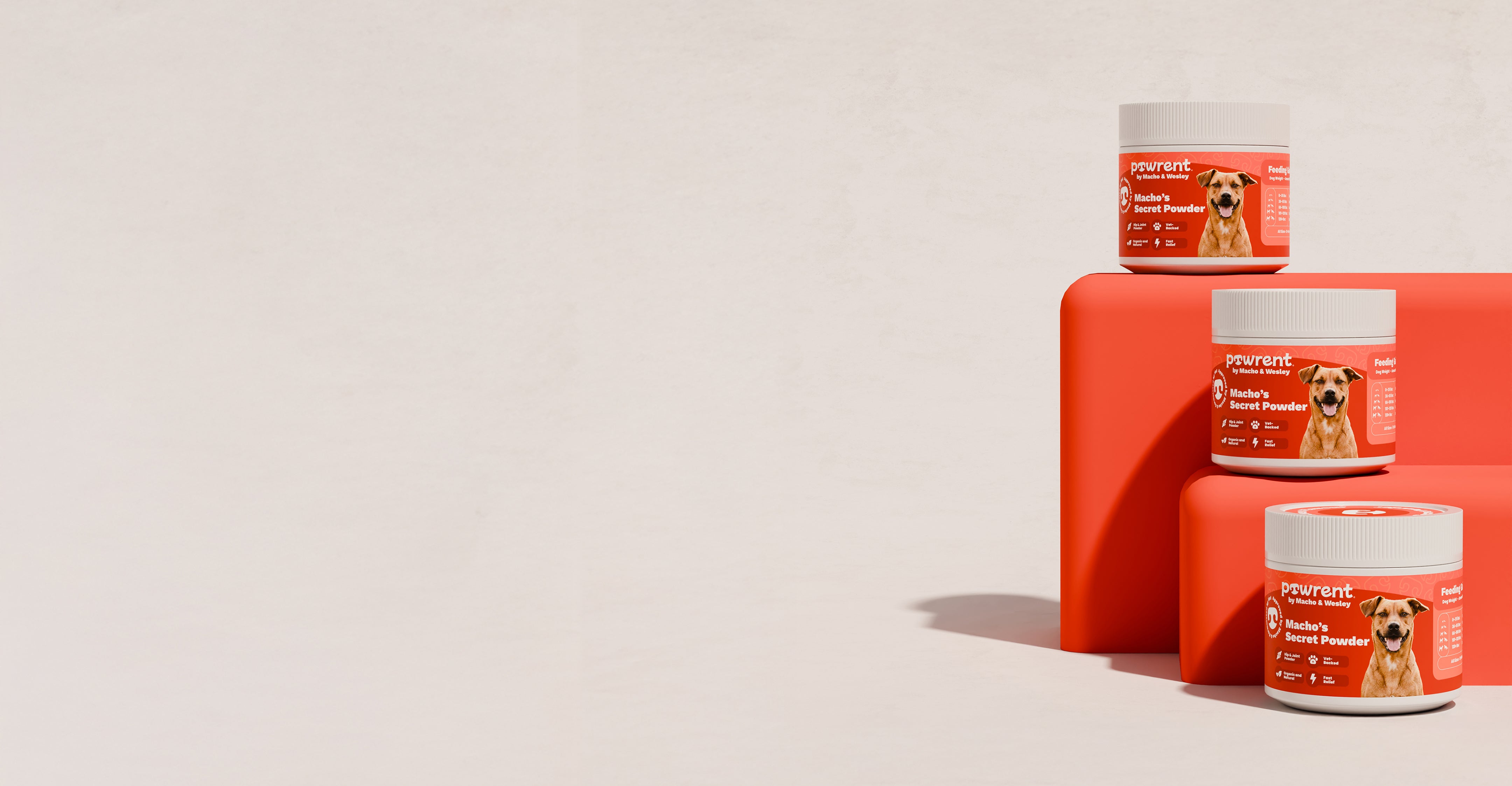 Super easy! Just sprinkle the powder on top of your dog's regular food. It works with dry kibble, wet food, or raw food. The powder comes with a scoop and you simply dose based on your dog's weight. No breaking chews in half. No fighting to get pills down. No guessing. Every dog from tiny Chihuahuas to giant Great Danes can use it with precise, weight based dosing.