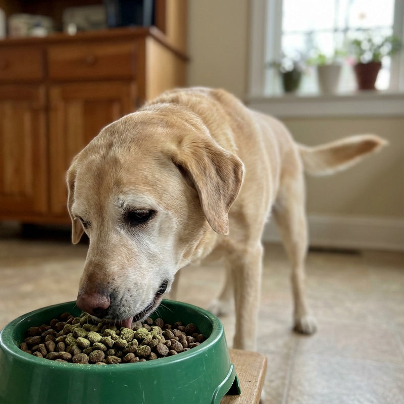Dogs love the natural taste of Green Lipped Mussel! Unlike chews or pills that dogs often spit out, our powder simply sprinkles on top of their regular food. It takes about 5 seconds and works with any type of food whether dry, wet, or raw. Most dogs gobble it up without even noticing. Some owners say their dog now waits excitedly for their daily sprinkle!